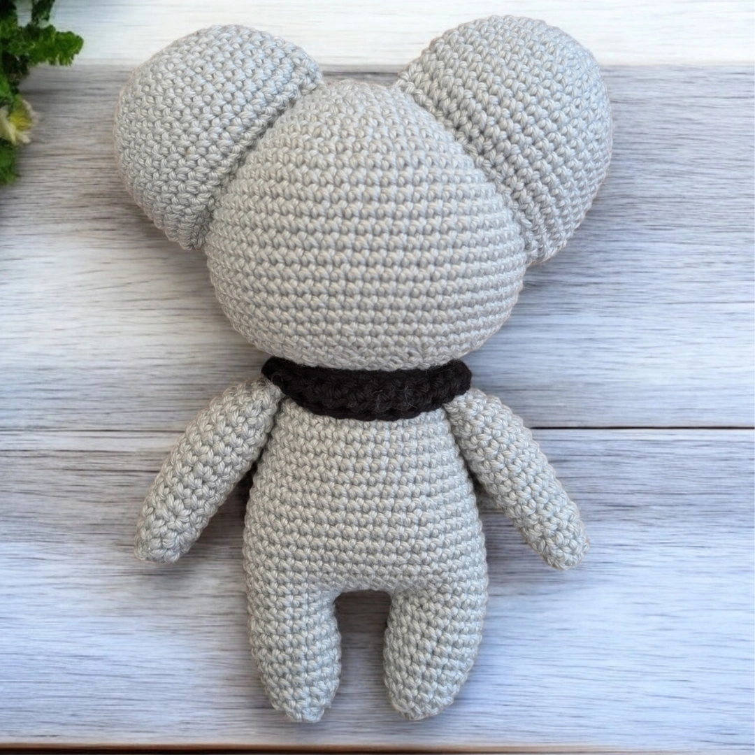 Crochetée en 2,5mm, le koala mesure environ 15 cm. La taille peut varier selon votre façon de crocheter.